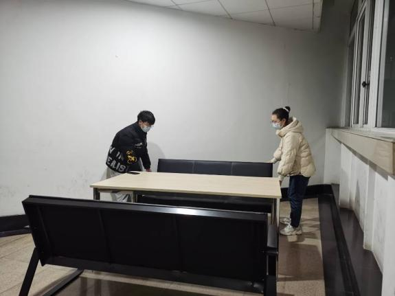 在接近一个小时的巡逻检查过后,四人在一楼进行了最后的收尾工作。他们协作将一楼的桌椅摆放归位,清理桌面垃圾。在大家认真仔细的检查下,终于圆满完成了志愿工作。