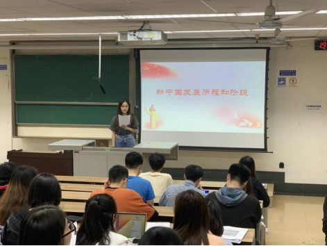 积极分子张子晴同志作为主讲人,上台为大家讲解新中国重大事件以及新中国的发展历程和阶段。