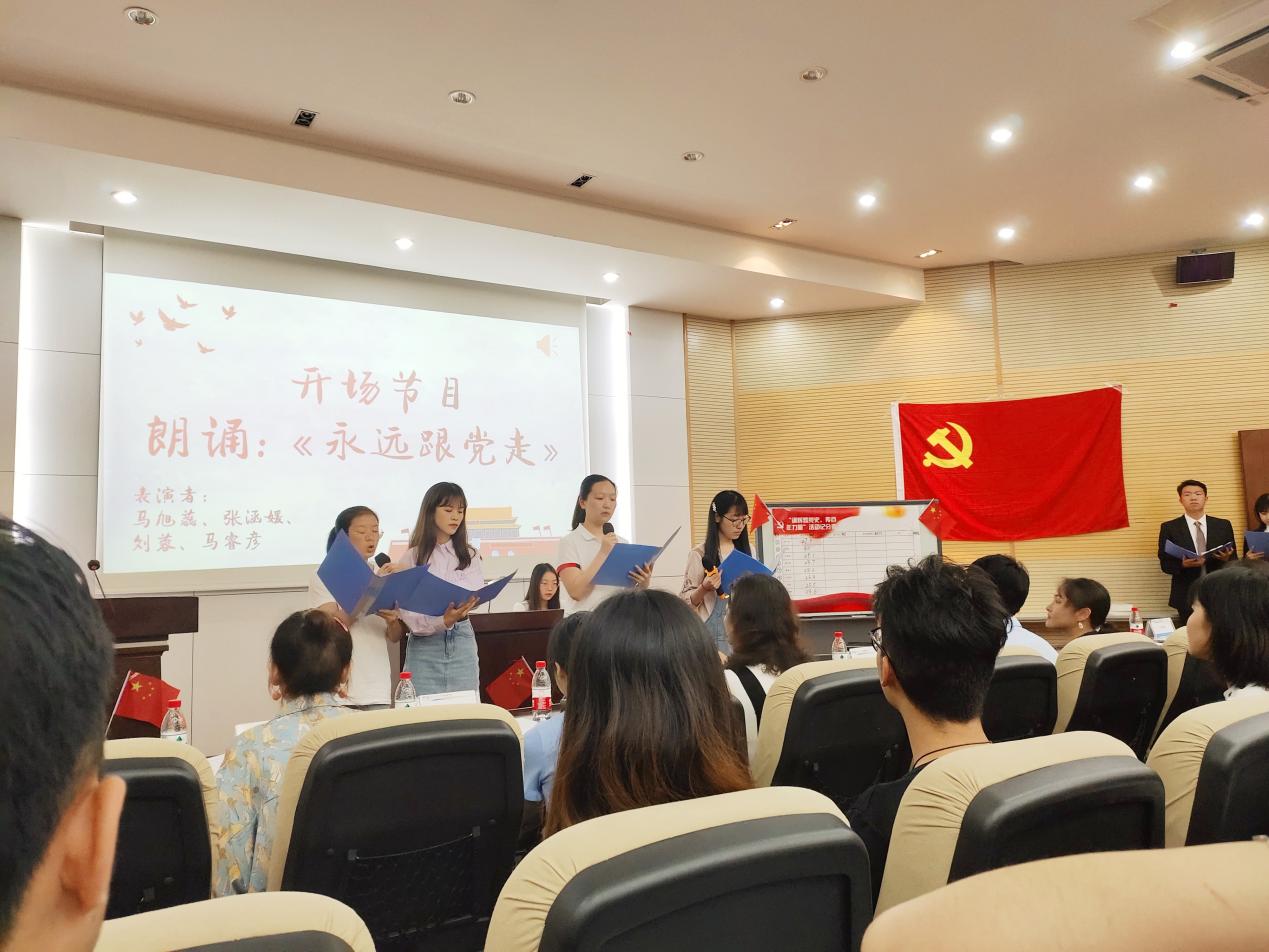 在活动的开场环节,党支部的四位党员同志或抑扬顿挫或慷慨激昂,为观众和评委带来了一场声情并茂的朗诵——《永远跟党走》。通过回顾党的历史和党的发展,以及中国共产党对新中国建设的伟大作用,讲出了党的儿女们心中最铿锵的誓言:铁心跟着您,永远不回头!