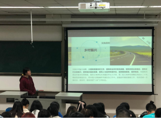 提案环节完毕后,主讲人总结发言并向同志们介绍了今年两会的重点之一——乡村振兴,会议过渡进入下一个环节,乡村振兴学习。周紫璇同志带领大家以视频和文字的方式回顾了乡村振兴战略。乡村振兴战略是习近平总书记2017年10月18日在党的十九大报告中提出的战略。十九大报告指出,农业农村农民问题是关系国计民生的根本性问题,必须始终把解决好“三农”问题作为全党工作的重中之重,实施乡村振兴战略。主讲人介绍了乡村振兴的起源、发展和最终目标,并以身边的例子加深了同志们的理解。
