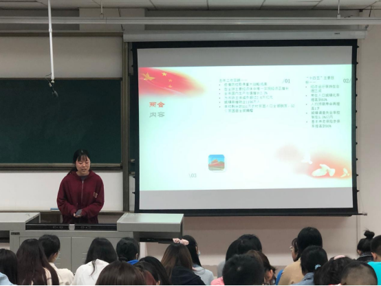 本科管理类党支部在九里校区逸夫馆4106开展了主题为“聚焦两会·关注民生”的学习活动。本次会议内容分为四个部分:一是进行两会相关的知识学习,并通过模拟扮演环节让同志们更好体验两会精神。二是进行乡村振兴专题的学习,三是进行党支部规章的学习,最后进行了入党积极分子的接收。本次会议由刘蓉和刘益山同志组织进行,周紫璇同志担任本次会议主讲人,支部全体成员参与了本次会议。