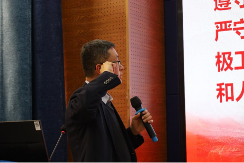 学院党委副书记杨宏毅同志主持会议,学院党委委员、各党支部书记及委员出席大会。大会在严格落实疫情防控要求的前提下进行,主要包括学院党史学习教育动员、巡察整改工作部署、2019及2020年度先进党支部和优秀党支部书记表彰、重温入党誓词四个环节。