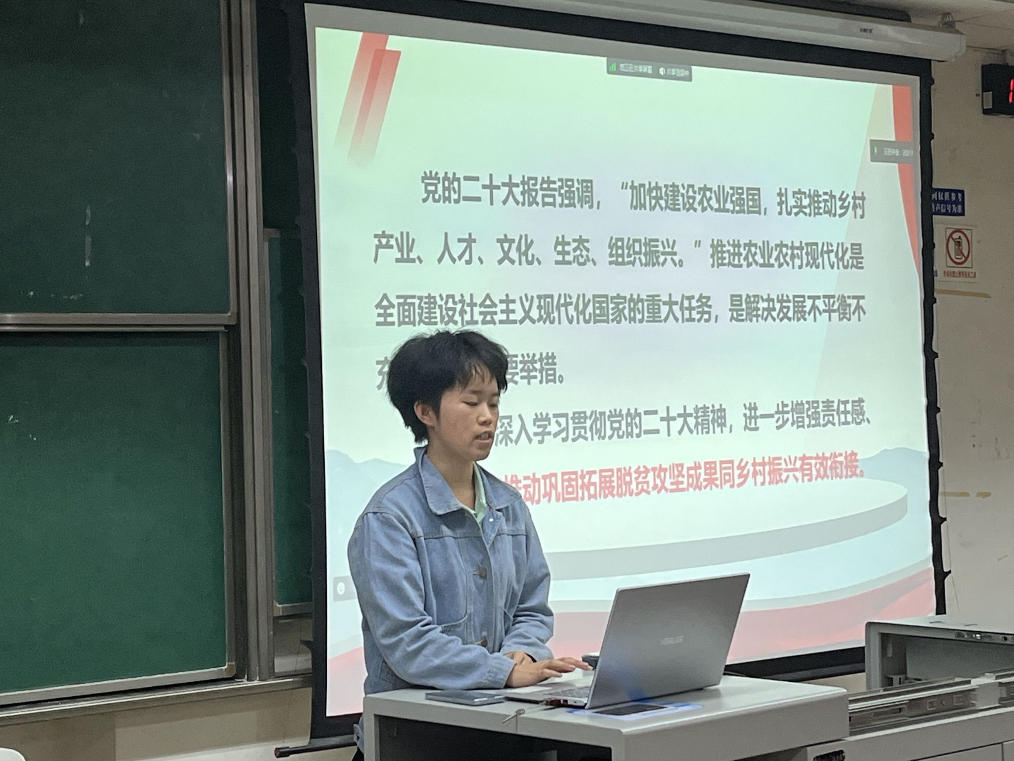 在10月17日“国际消除贫困日”来临之际,为弘扬脱贫攻坚精神,凝聚乡村振兴、教育振兴强大精神力量,引导广大青年进一步强化责任感、使命感,聚焦新时代新征程党的中心任务,在乡村振兴中挺膺担当,2023年10月26日,色色动漫 本科第四党支部在九里校区逸夫馆J4209组织开展了“党建引领风帆劲,乡村振兴谱新篇”主题党日活动。