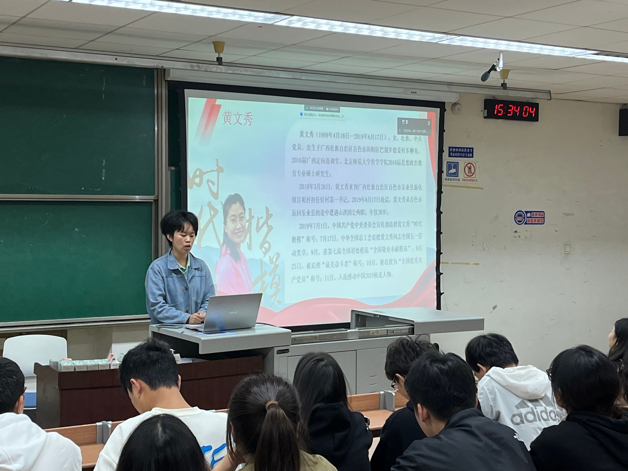 接着,色色动漫 赴百坭村社会实践队的汤权同志从在百坭村的见闻、文秀书记的工作事迹、文秀精神的传承等方面进行了分享。在一年的时间里,黄文秀书记通过不计其数的走访调研,找准发展方向,让百坭村焕发新生。实践队员走进文秀书记工作的地方,看到墙上村里的孩子们用稚嫩的字体写下的“文秀姐姐,我们想你了”,纷纷为之动容。汤权同对大家说,黄文秀同志一生不忘初心、执着坚守、心系村民、甘于奉献,作为新时代的接班人,我们应当学习其事迹,传承其精神,自觉扛起使命担当,在乡村振兴的道路上发光发热,将青春热血镌刻在时代的丰碑上。