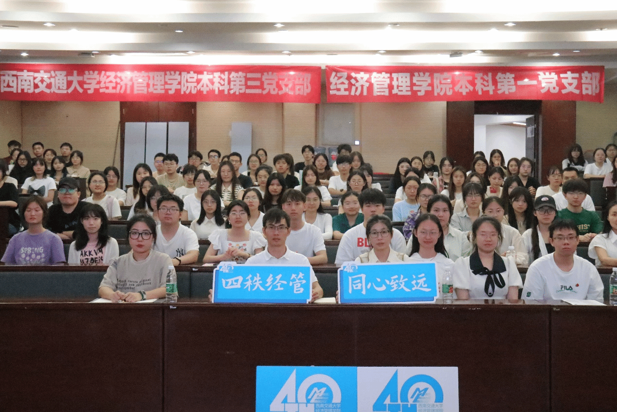 党委委员李良副院长,团委书记、本科第一党支部书记贾佳,团委副书记、本科第三党支部书记苏扬,本科第一党支部副书记贺小轩和本科第一、第三党支部全体成员。