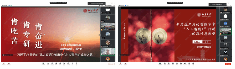 首先,本科第三党支部带领全体成员回顾了前期开展的联学活动。第二个议程是北京大学深圳研究生院研究生宣讲团成员徐静和邢严文分别以“新质生产力的智能华章——‘人工智能+’行动的实践与展望”和“肯吃苦、肯专研、肯奋斗——习近平总书记的‘北大寄语’与新时代北大青年的成长之路”为主题开展了宣讲。