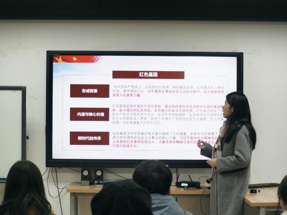 王睿同学主持,大家一起着重学习了红色基因的内涵与价值。红色基因,根植于中国共产党领导的革命、建设与改革的伟大历程,从党的诞生、长征的壮丽史诗、抗日战争的烽火连天到解放战争的胜利凯歌,直至新中国成立后的持续奋斗,始终为民族复兴注入不竭动力。在新时代的浪潮中,红色基因与现代社会的需求紧密结合,成为构筑民族复兴文化基石、引领社会主义事业破浪前行的重要力量。