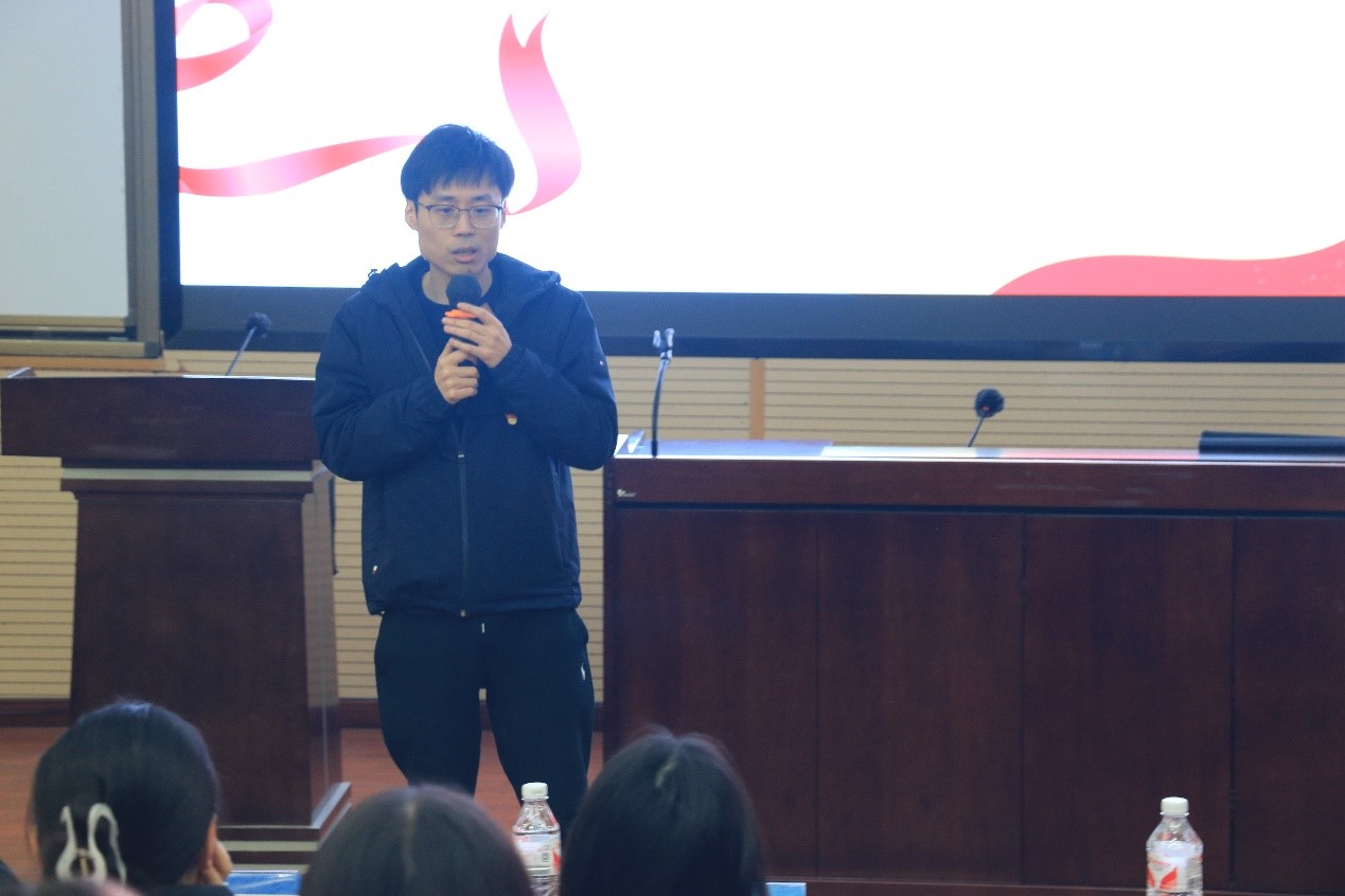 本科第一党支部的学院党委委员马锋副院长讲话。他强调青年党员要保持一直学习的习惯,除关注本专业外多了解其他学科专业的发展,并提出了要持续提升自我创新创造能力,将学习成果切实转化为稳定推进日常学习、工作的强大力量的期望。并强调党员同志一定要发挥带头作用,保持党员的先进性。