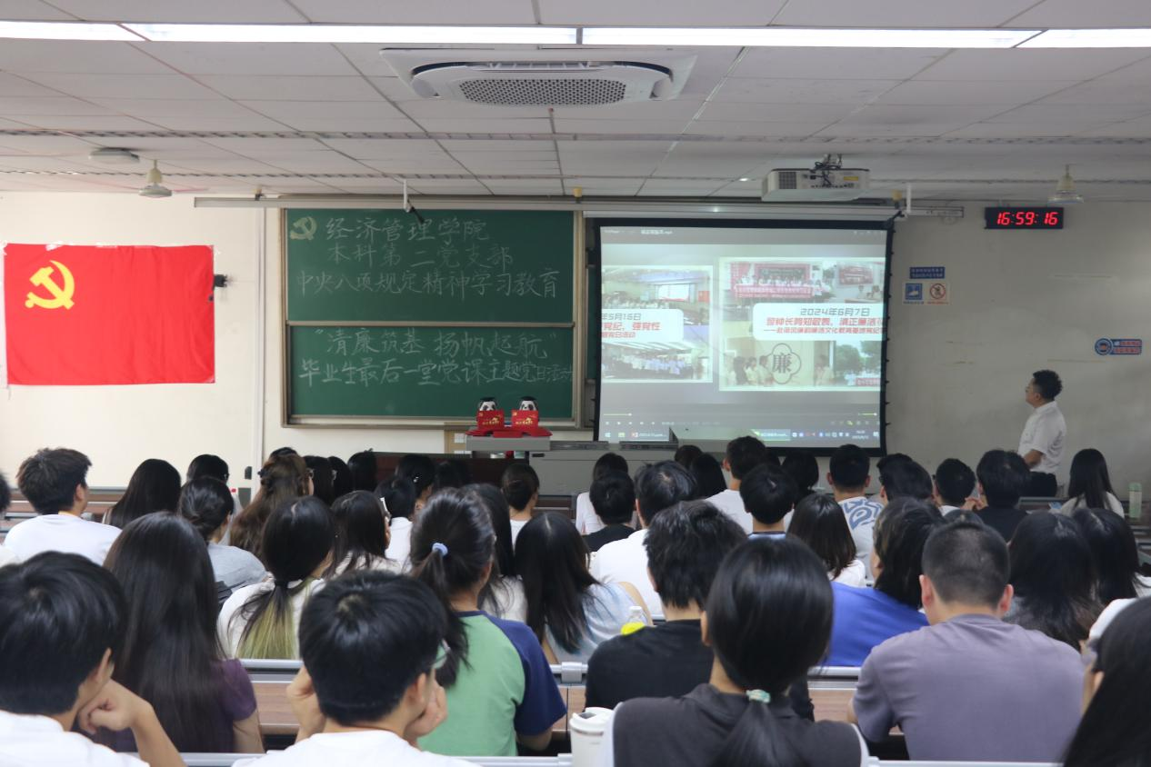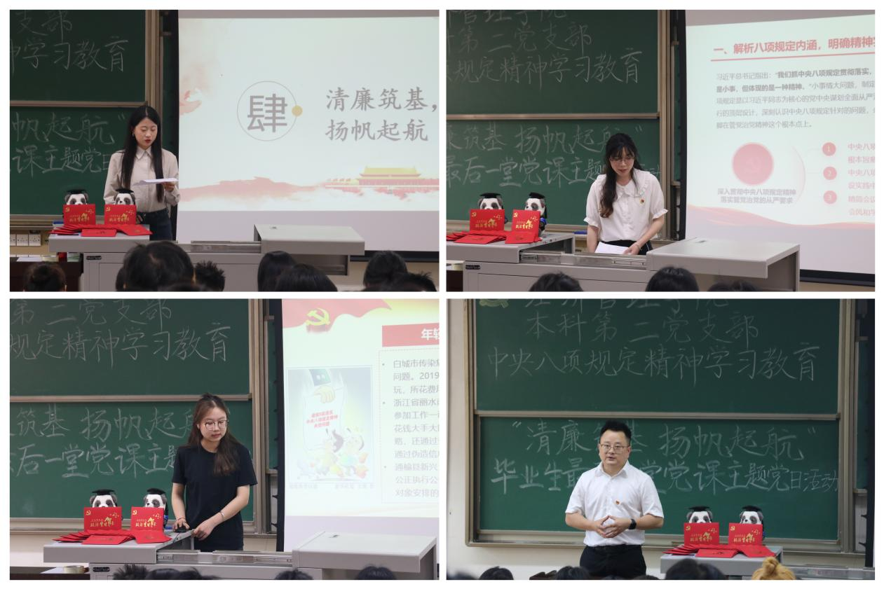 本科第二党支部于J4310开展深入贯彻中央八项规定精神学习教育——“清廉筑基、扬帆起航”毕业生最后一堂党课主题党日活动。