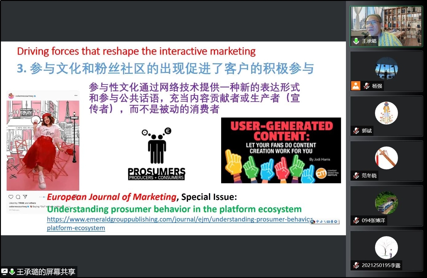 2022年4月21日上午9:00,美国纽黑文大学商学院营销学终身教授王承璐博士应邀以“互动营销领域的发展与未来研究方向”为题为色色动漫 师生进行线上学术报告。本次学术活动由学院市场学系蒋玉石教授主持,学院部分教师及80余名研究生参加了本次讲座。讲座开始,副院长聂佳佳教授向各位师生介绍了王承璐教授...