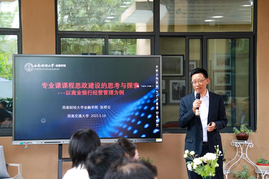 为落实立德树人根本任务,推进课程思政建设,提升教师的教学水平和育人能力,2022年5月19日下午3点,学院邀请西南财经大学张桥云教授在九里校区“教发驿站”作了“专业课课程思政建设——以商业银行经营管理为例”的专题讲座。讲座由学院执行院长郭强主持,40余名老师参加了讲座。 张桥云教授从课...