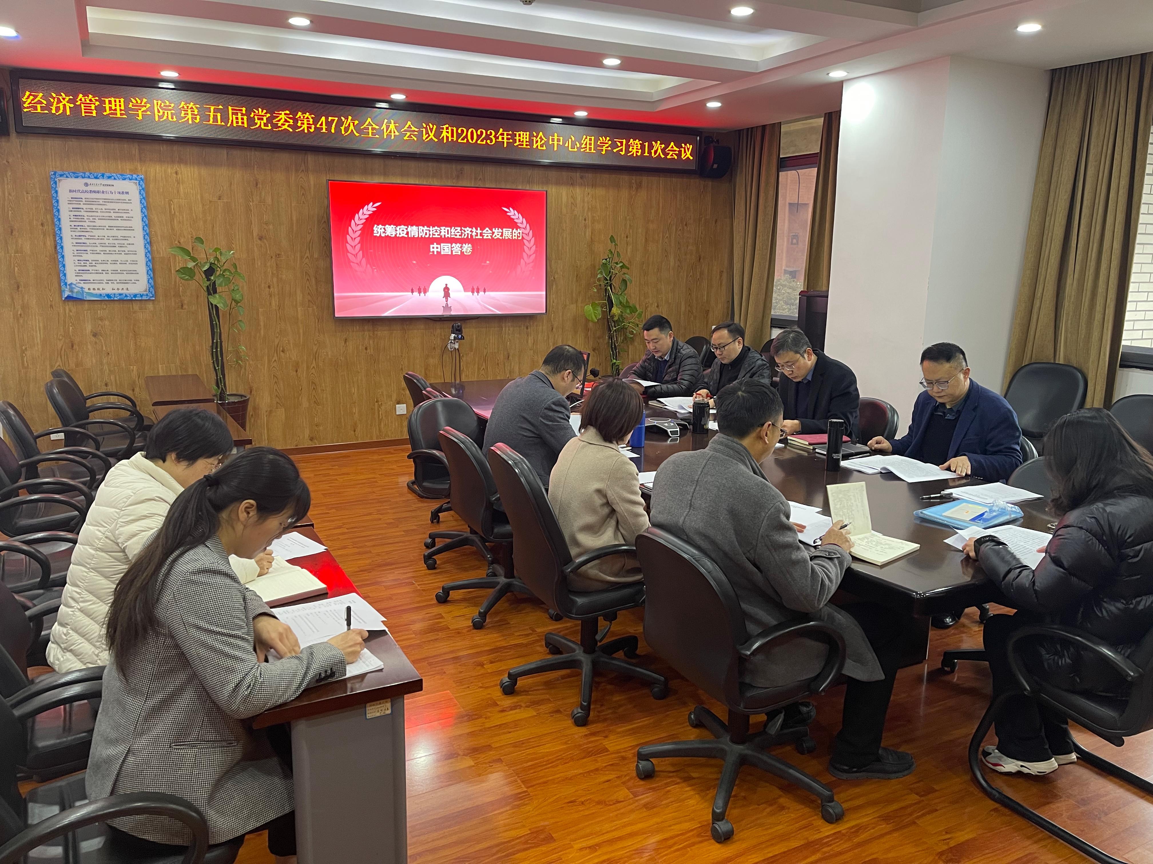 2023年3月23日上午8:30,学院第五届党委2023年第2次理论学习中心组学习、第48次全体会议及2023年第5次党政联席会在九里校区零号楼0607会议室召开。 理论学习中心组学习和党委会议由党委书记王斌主持。在2023年第2次党委理论学习中心组学习中,学院党委副书记晏理斌带领与会人员学习了习近平在第十四...